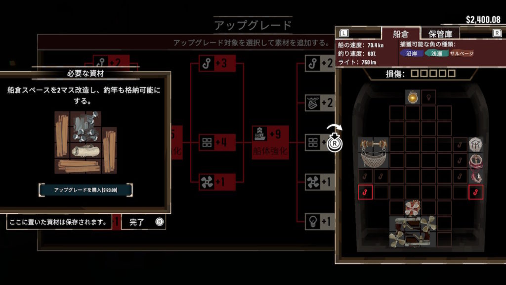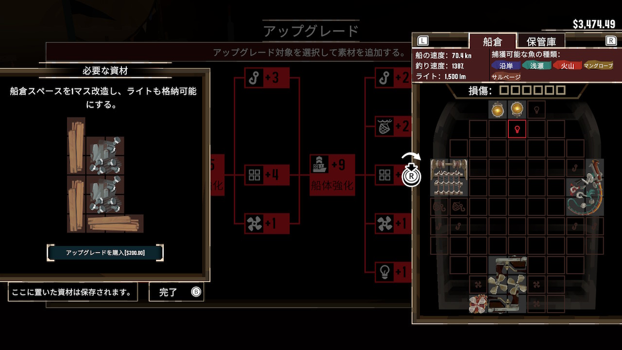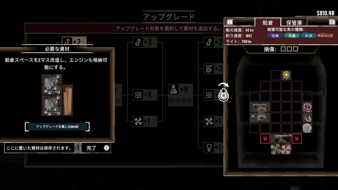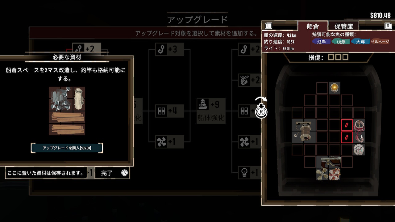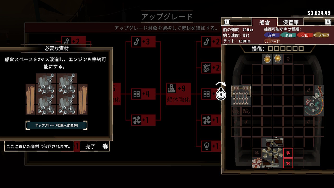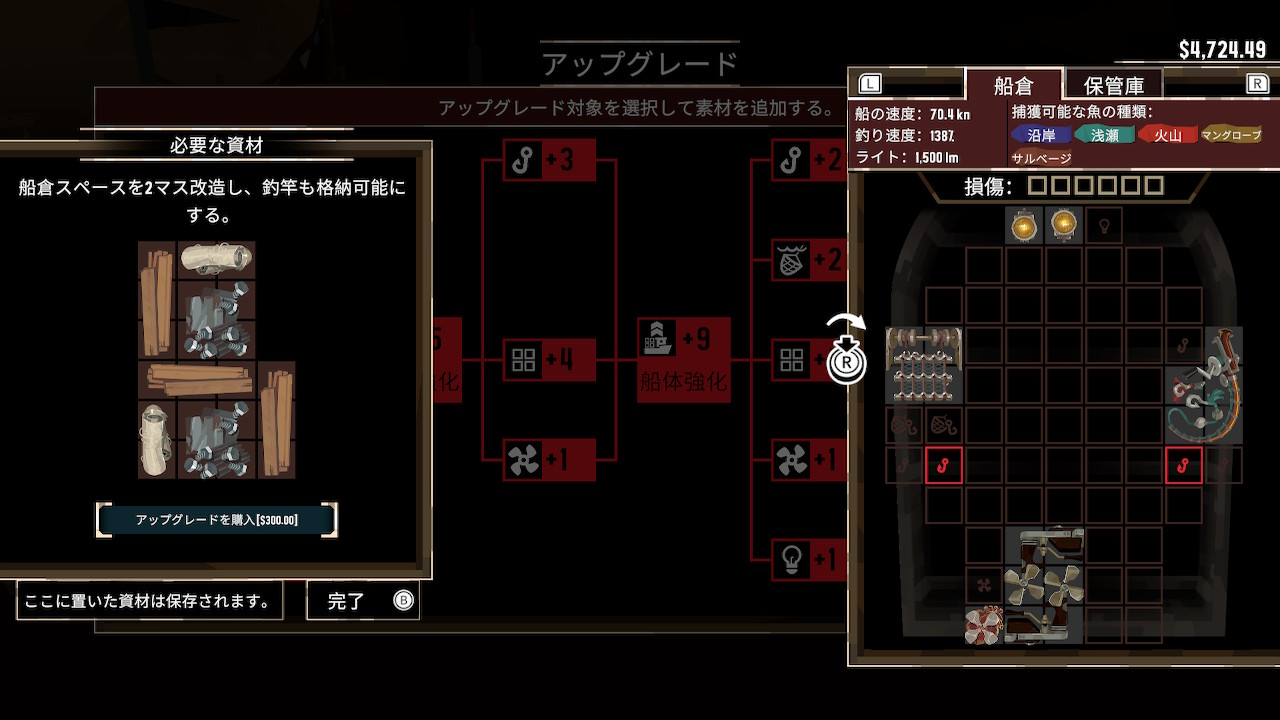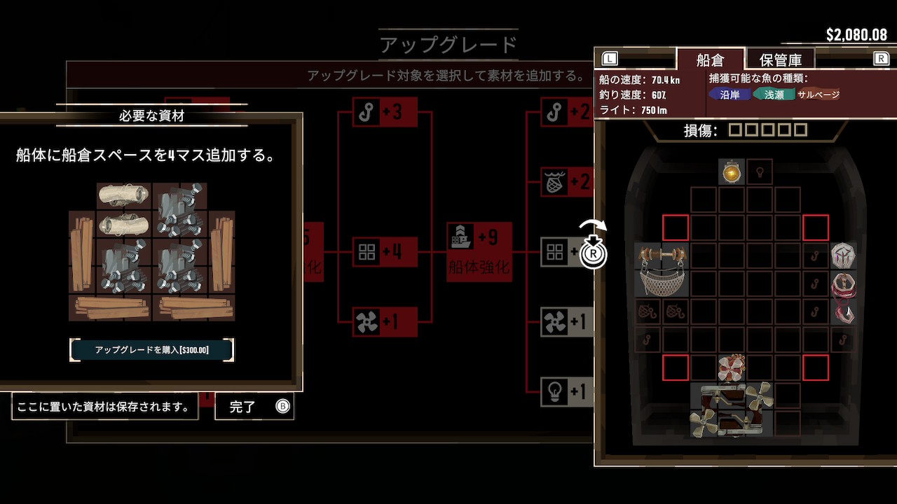 船倉スペースを2マス改造し、釣り竿も格納可能にする。