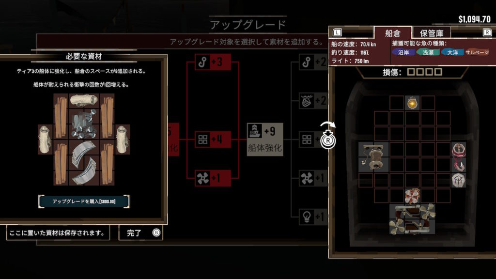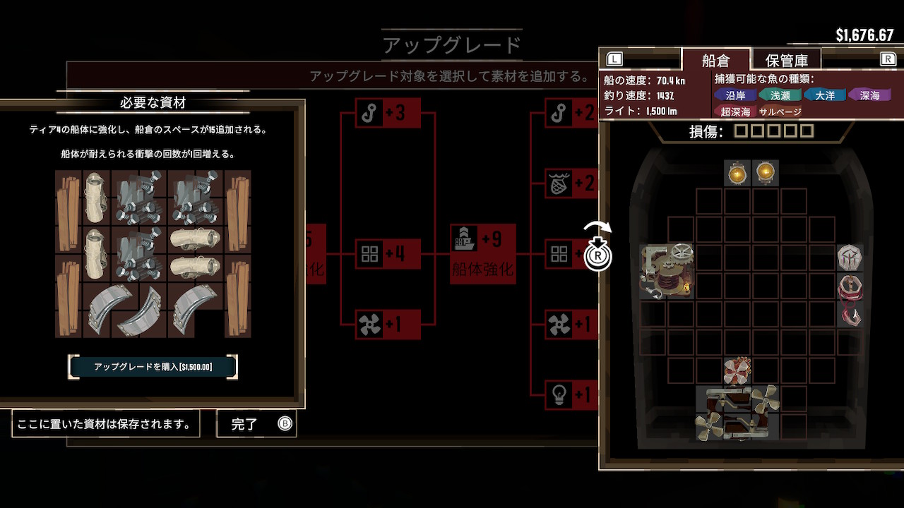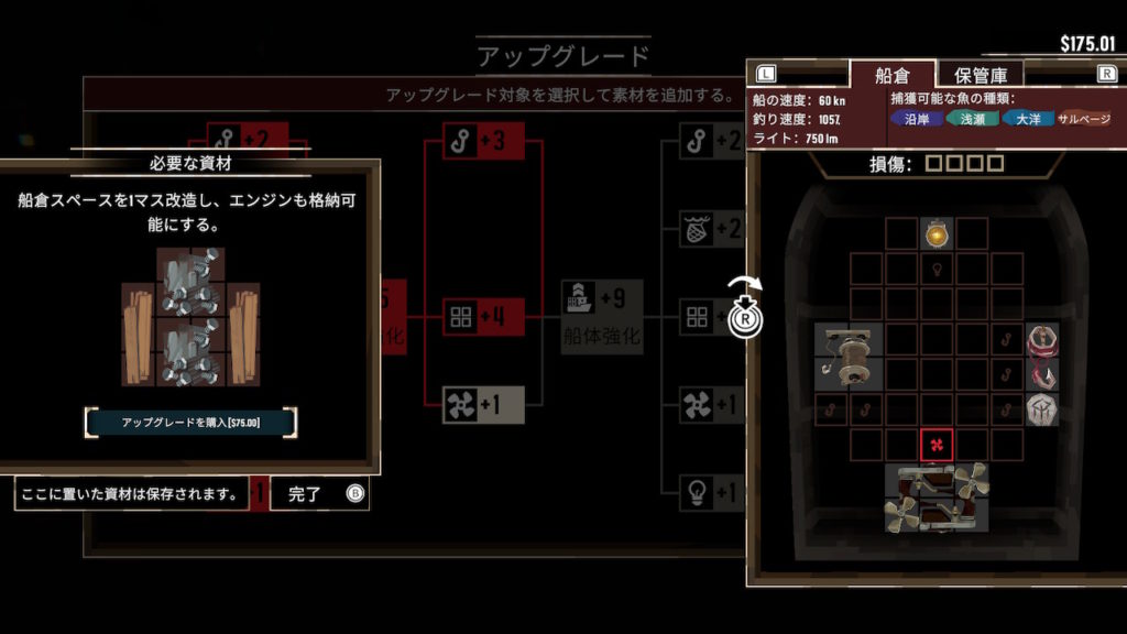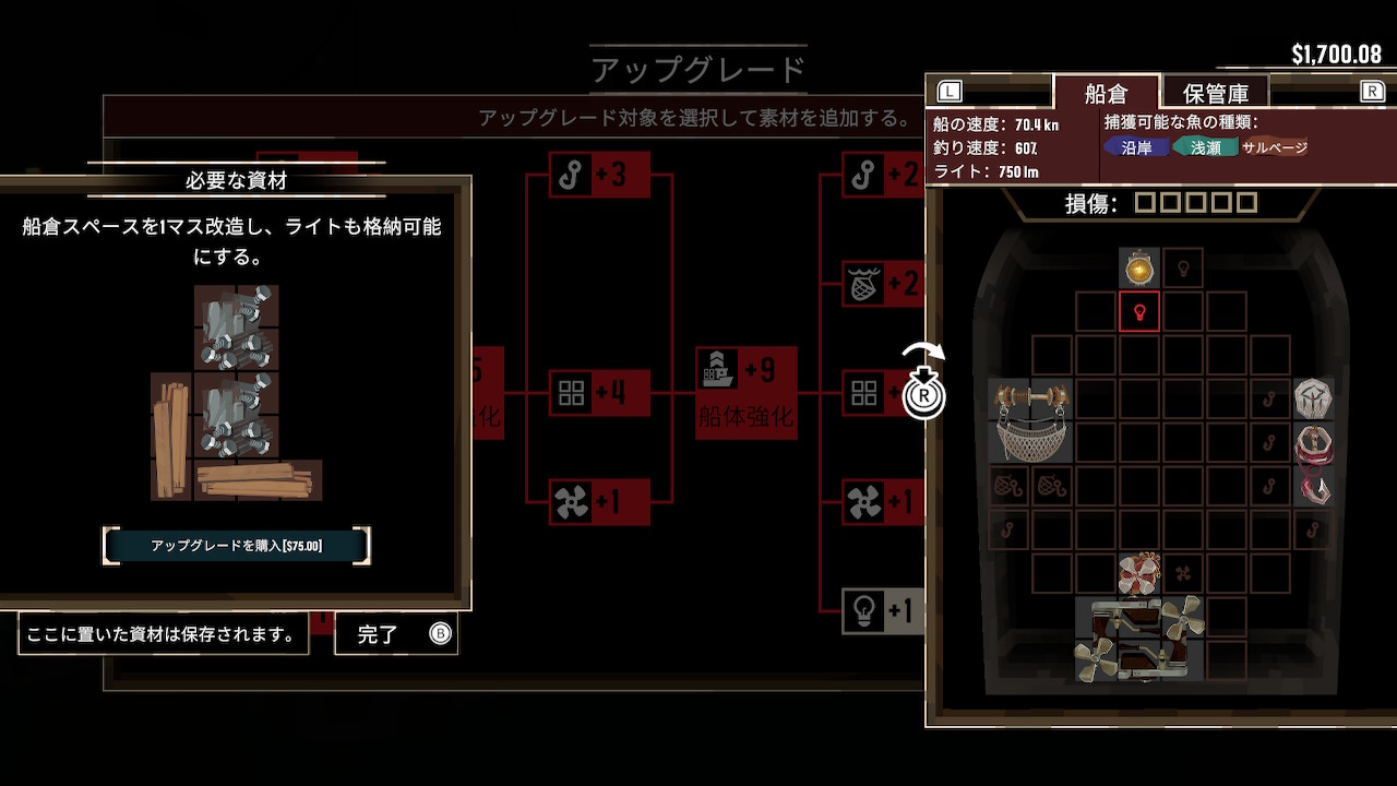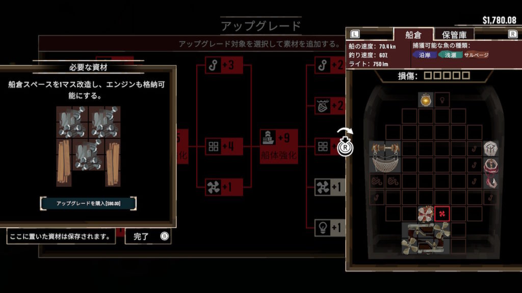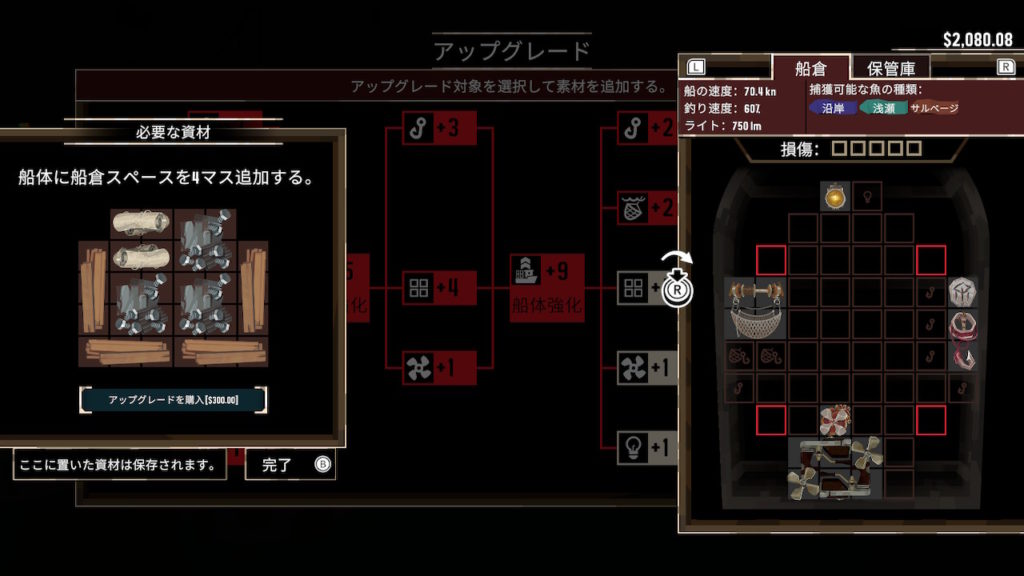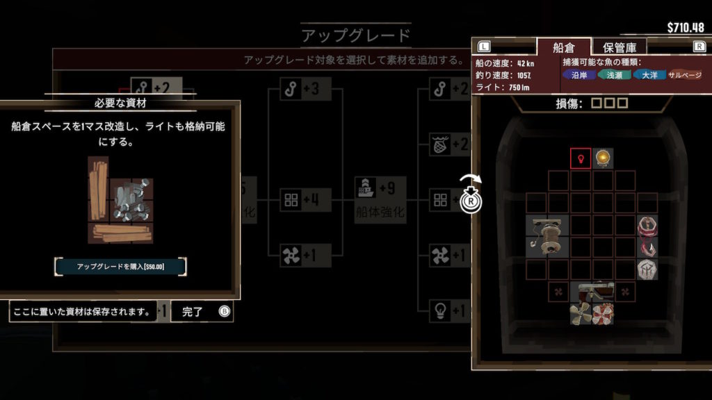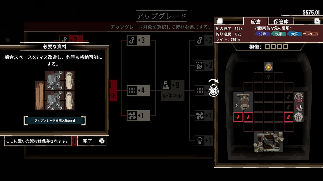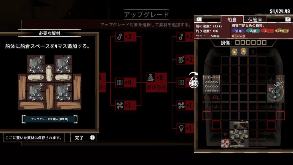船倉スペースを2マス改造し、釣り竿も格納可能にする。