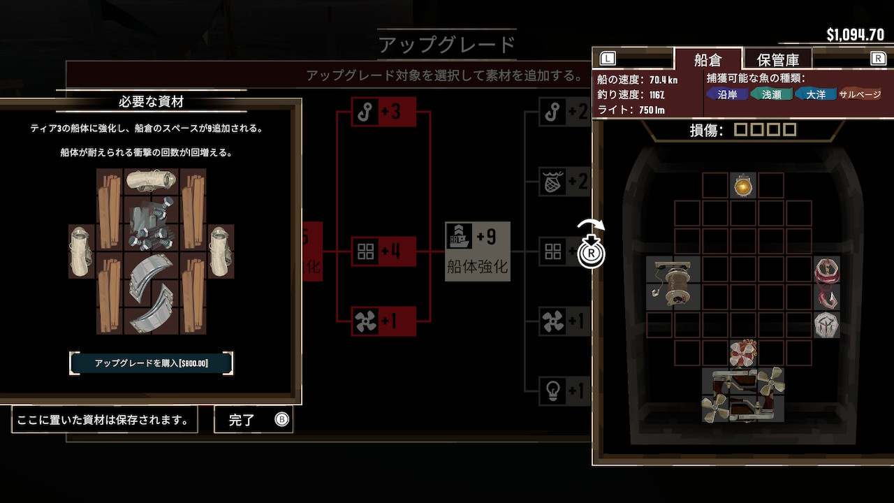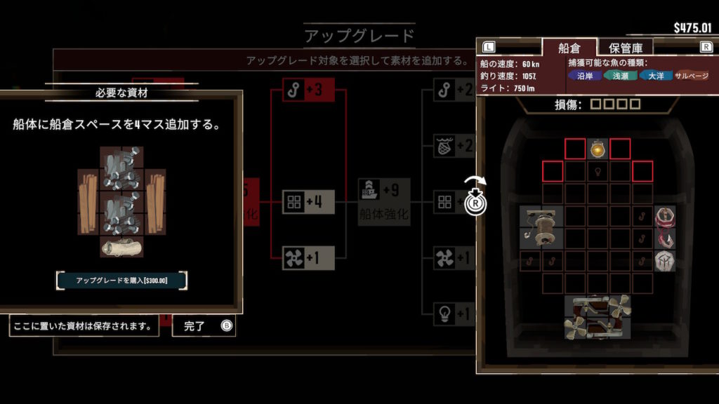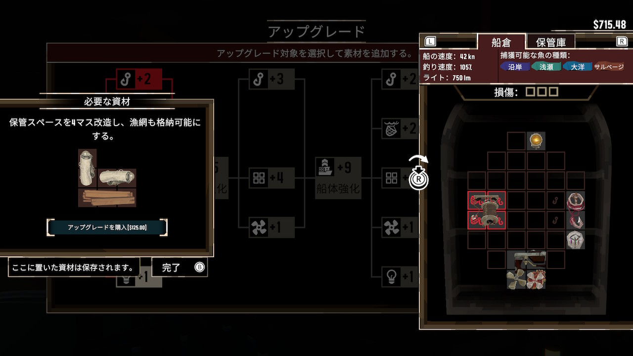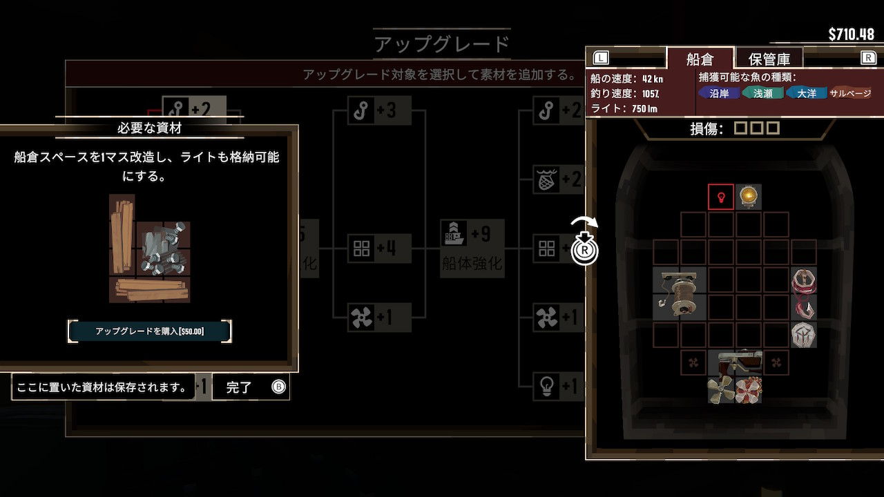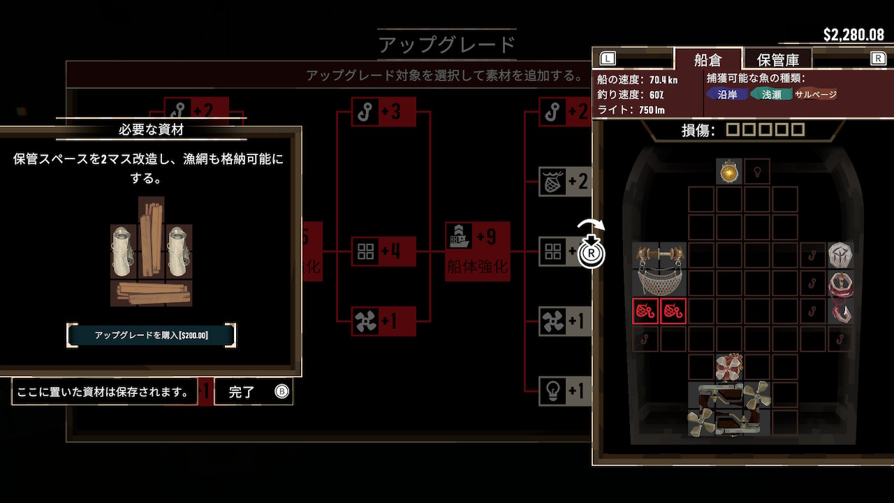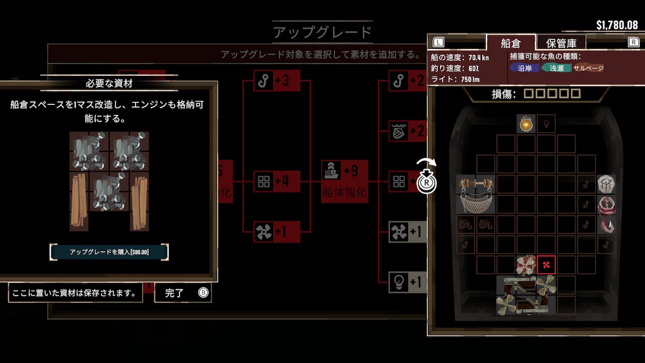 保管スペースを4マス改造し、漁網も格納可能にする。