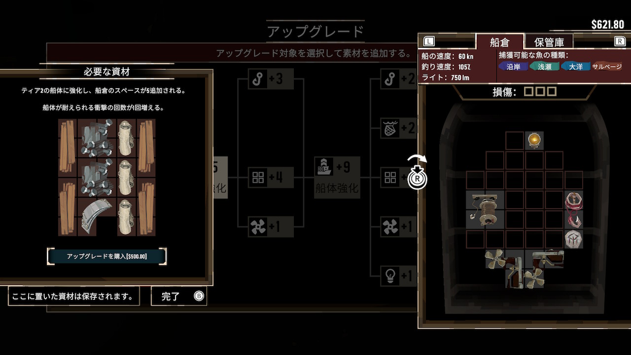 船倉スペースを3マス改造し、釣り竿も格納可能にする。