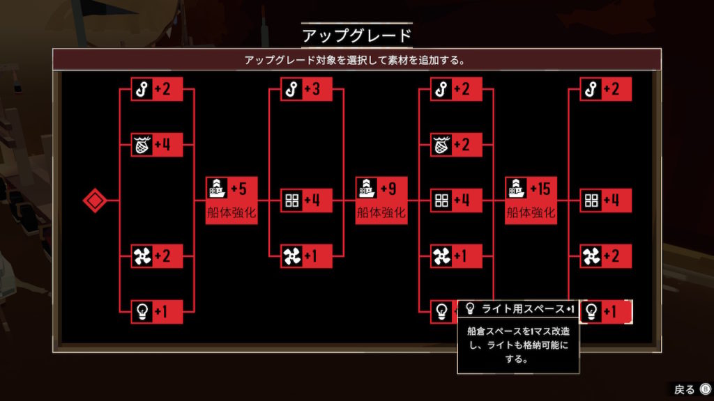 船倉スペースを1マス改造し、ライトも格納可能にする。